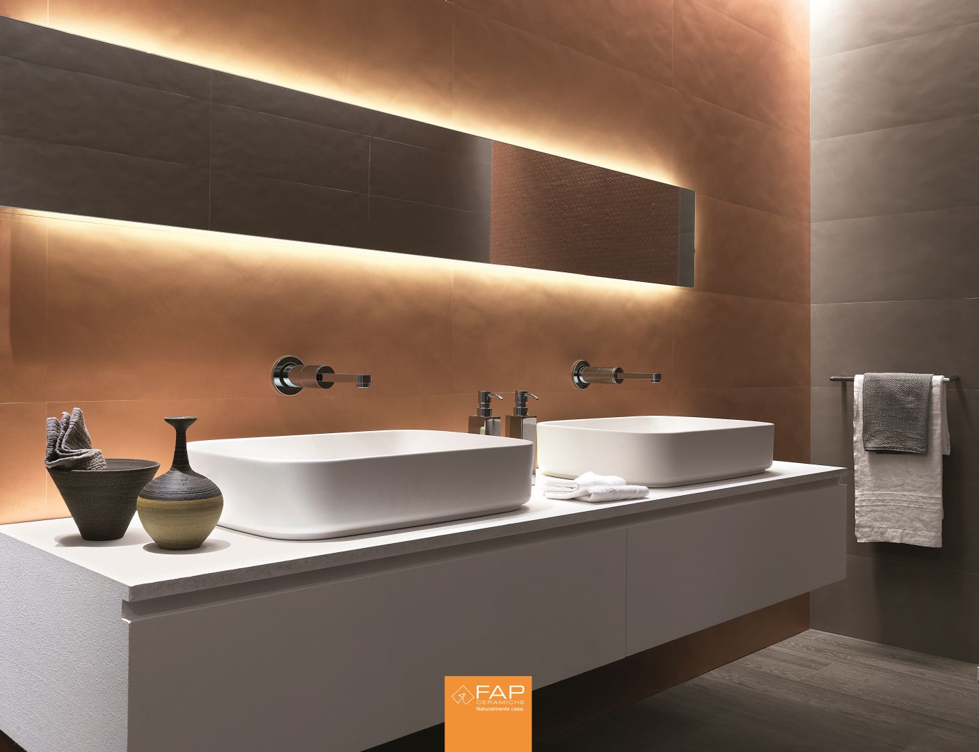 Baie cu Faianta Colornow Curcuma si Gresie tip Parchet
