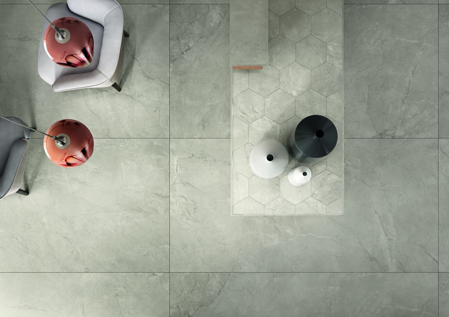 Pardoseala cu Gresie Portelanata tip Marmura Elements S.Grey