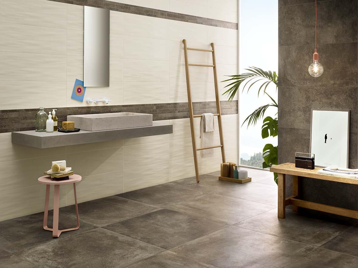 Baie cu Faianta Decorata si Gresie tip Parchet Roots