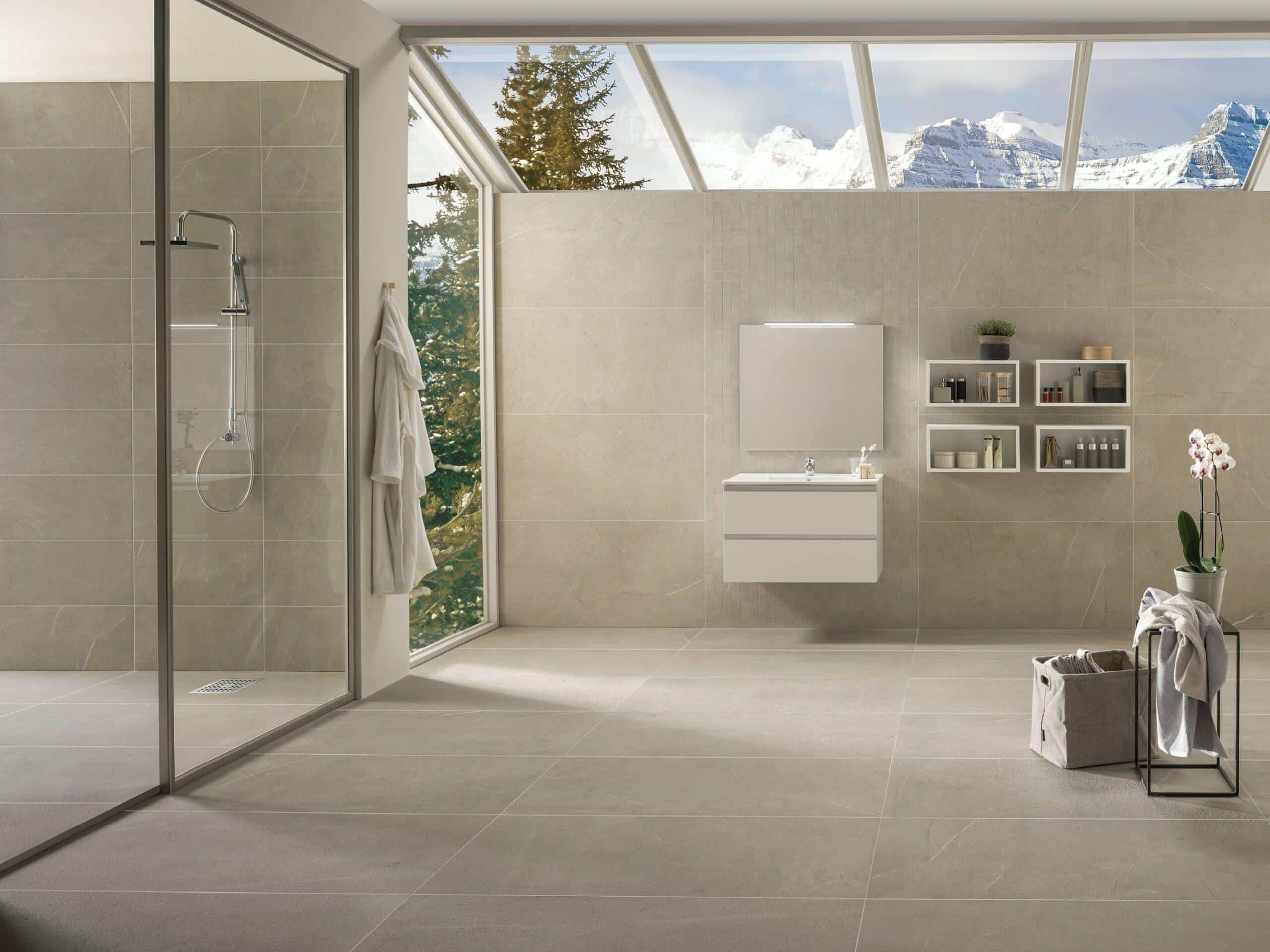 Gresie Dolomiti – placi de gresie portelanate, rectificate, aspect de piatra, tip suprafata: mata, lustruita sau structurata. Elemente decorative si piese speciale: mozaic, plinte, trepte. Colectie de gresie portelanata tip piatra pentru montaj la interior si la exterior, produsa in Italia – La Fabbrica.