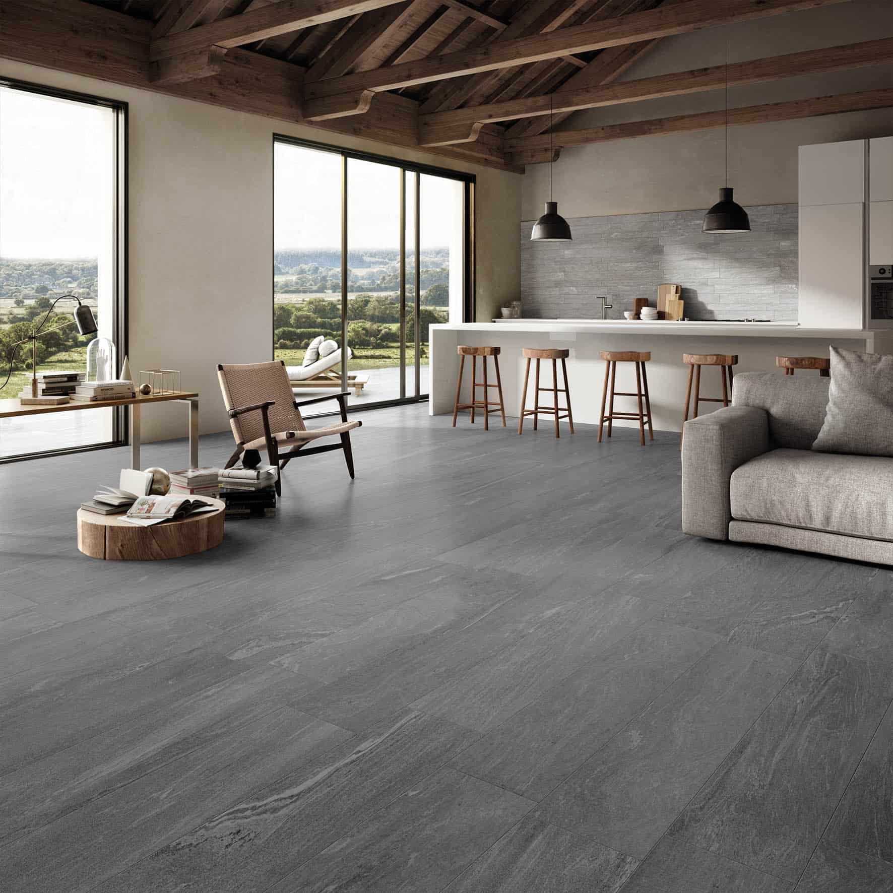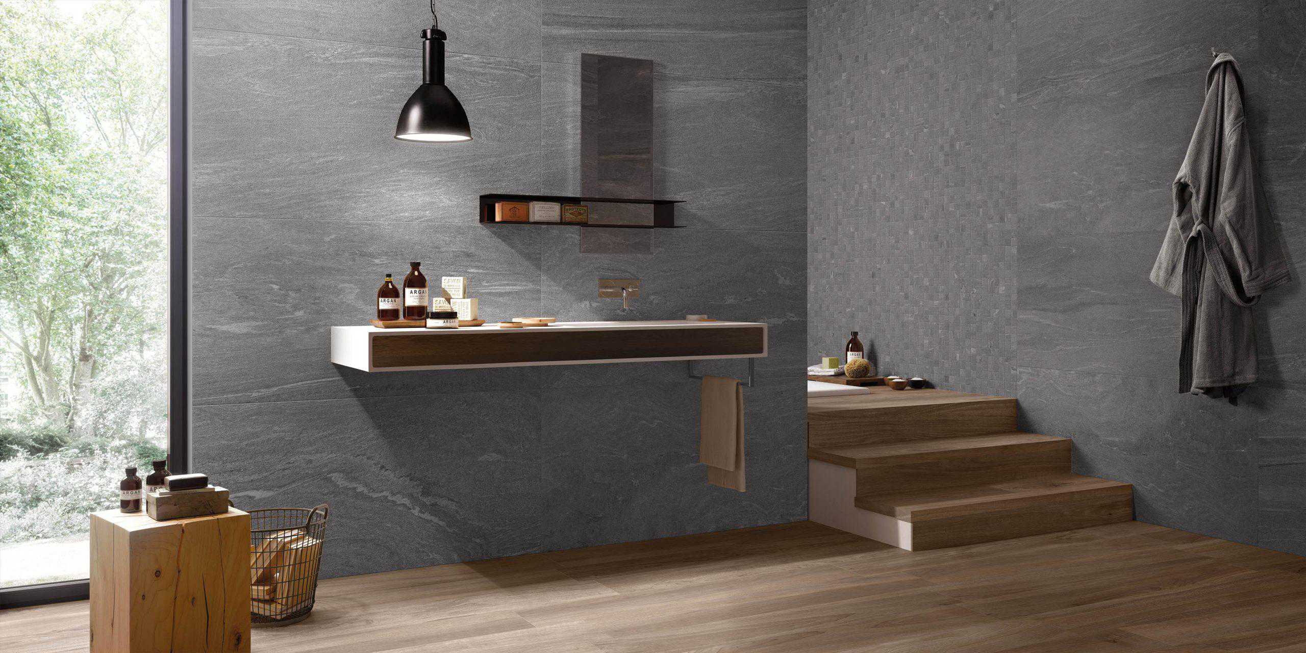 Gresie Stonework – colectie de gresie portelanata cu aspect de piatra. Ardesia Nera, Quarzite Bianca, Beola, Lugnez sunt pietre naturale cu caracteristici estetice diferite care au in comun culori reci, rafinate, pietre perfecte pentru un stil Nordic caracterizat de un mix echilibrat de functionalitatea si simplitatea formelor care confera spatiilor o eleganta rafinata. Placi de gresie portelanate pentru interior si exterior de la Supergres Ceramiche.