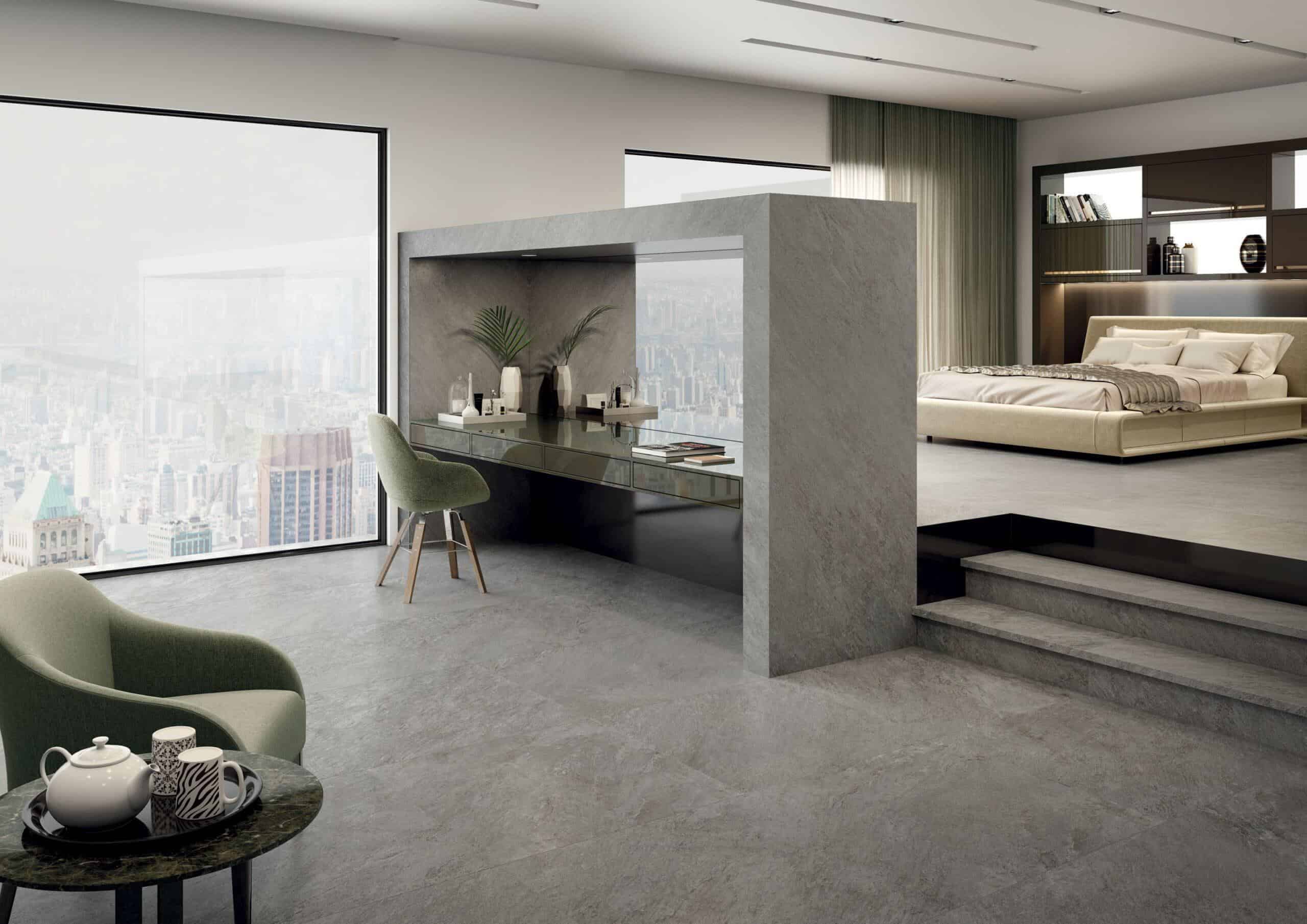 Gresie Storm LF – placi de gresie portelanate, rectificate, aspect de piatra, tip suprafata: mata sau structurata. Elemente decorative si piese speciale: mozaic, plinte, trepte. Colectie de gresie portelanata tip piatra pentru montaj la interior si la exterior, produsa in Italia – La Fabbrica.