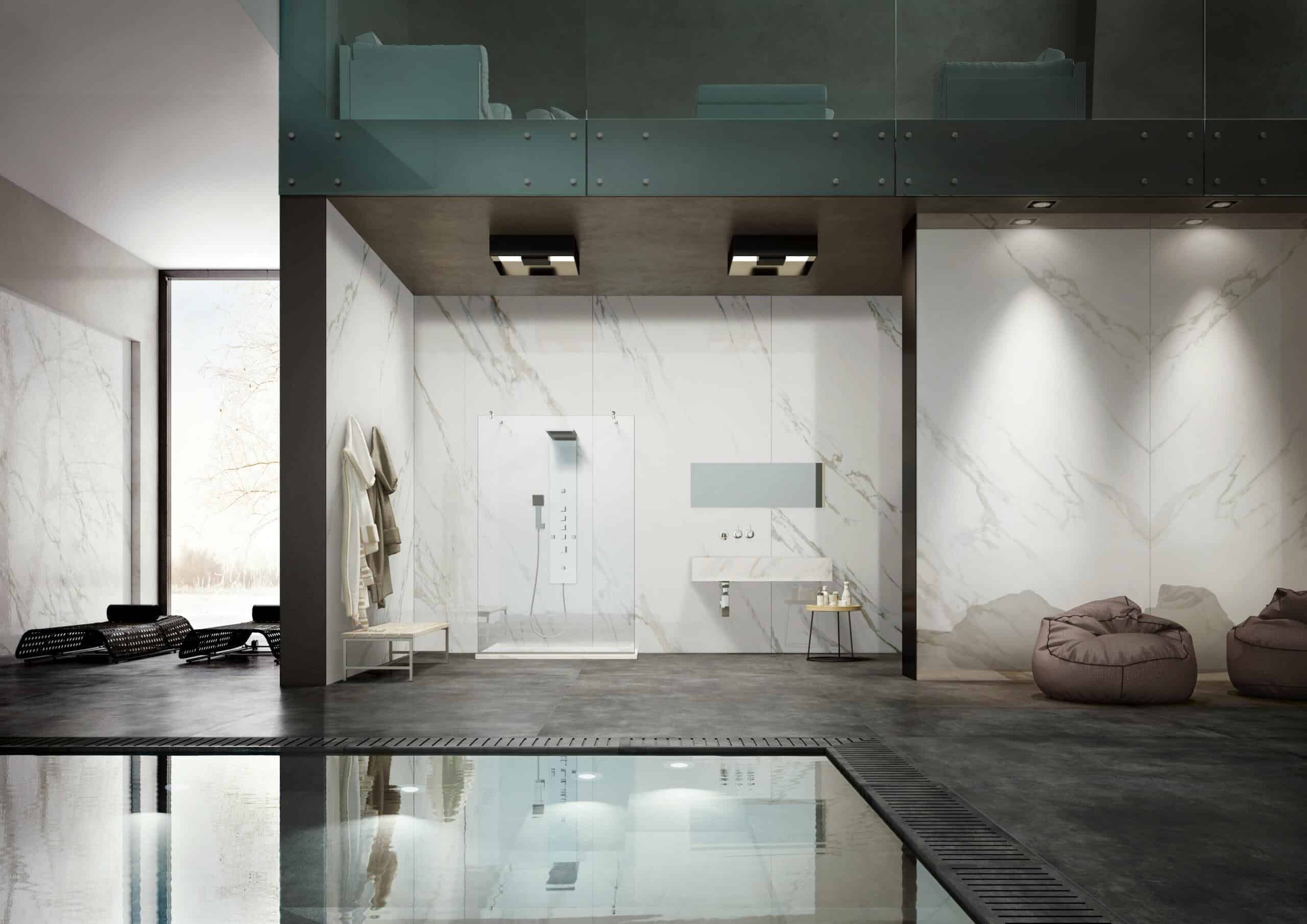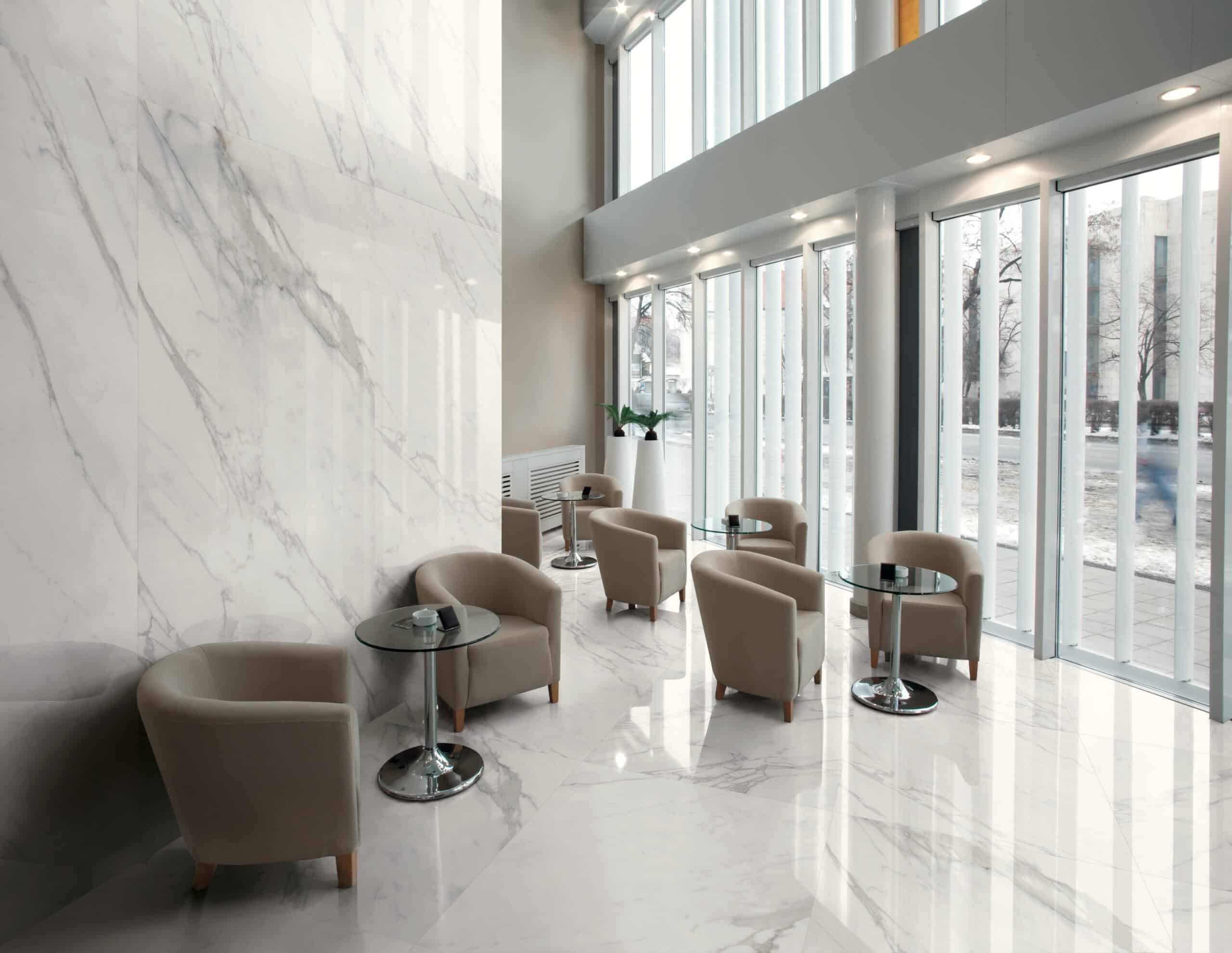 Lastre Marmi Calacatta – Crema Marfil – placi de gresie portelanate, rectificate, tip suprafata mata sau lucioasa, modele ce interpreteaza realist si detaliat marmura naturala. Colectie de gresie portelanata aspect marmura – Ava Ceramiche.