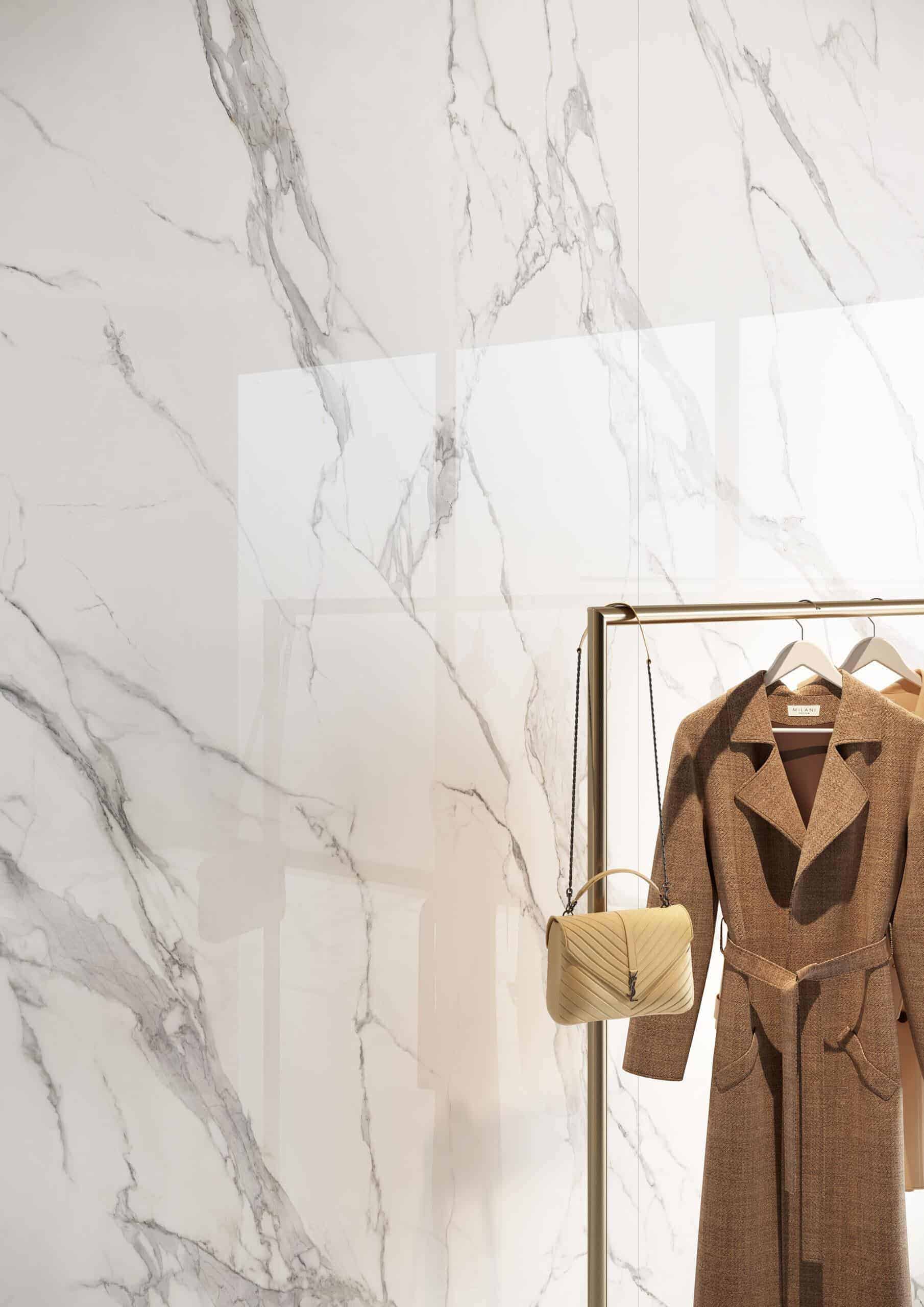 Lastre Marmi Statuario Reale – placi de gresie portelanate, rectificate, tip suprafata mata sau lucioasa, model ce reinterpreteaza realist si detaliat marmura naturala. Lastre Marmi Statuario Reale gresie portelanata tip marmura – Ava Ceramiche.