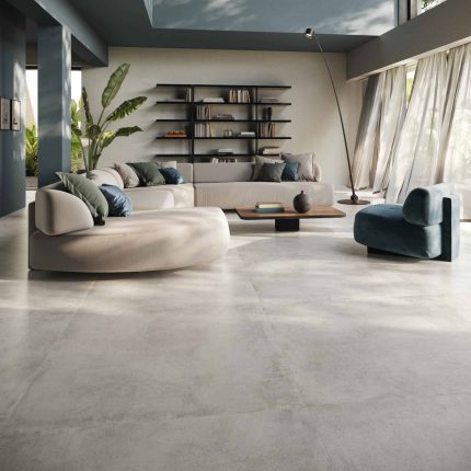Gresia porțelanată tip marmură este o opțiune populară pentru a crea un aspect luxos și elegant. Gresiei porțelanată cu aspect marmură imită frumusețea și textura marmurei naturale, oferind în același timp o durabilitate și o ușurință în întreținere mult mai mari decât cele ale pietrei naturale. De asemenea, datorită tehnologiei avansate de fabricație, modelele și culorile pot fi imitate cu o precizie ridicată. De asemenea, este ușor de curățat și de întreținut, fiind o opțiune excelentă pentru zonele cu trafic intens, cum ar fi holurile, camerele de zi, băile și bucătăriile. Gresia porțelanată este recomandată și pentru pardoseli cu încălzire. Living cu gresie tip marmura Roma Stone de la FAP Ceramiche.