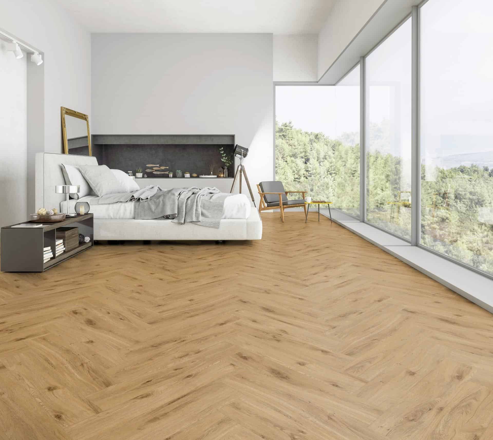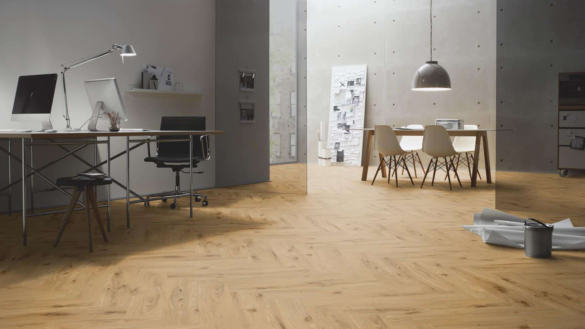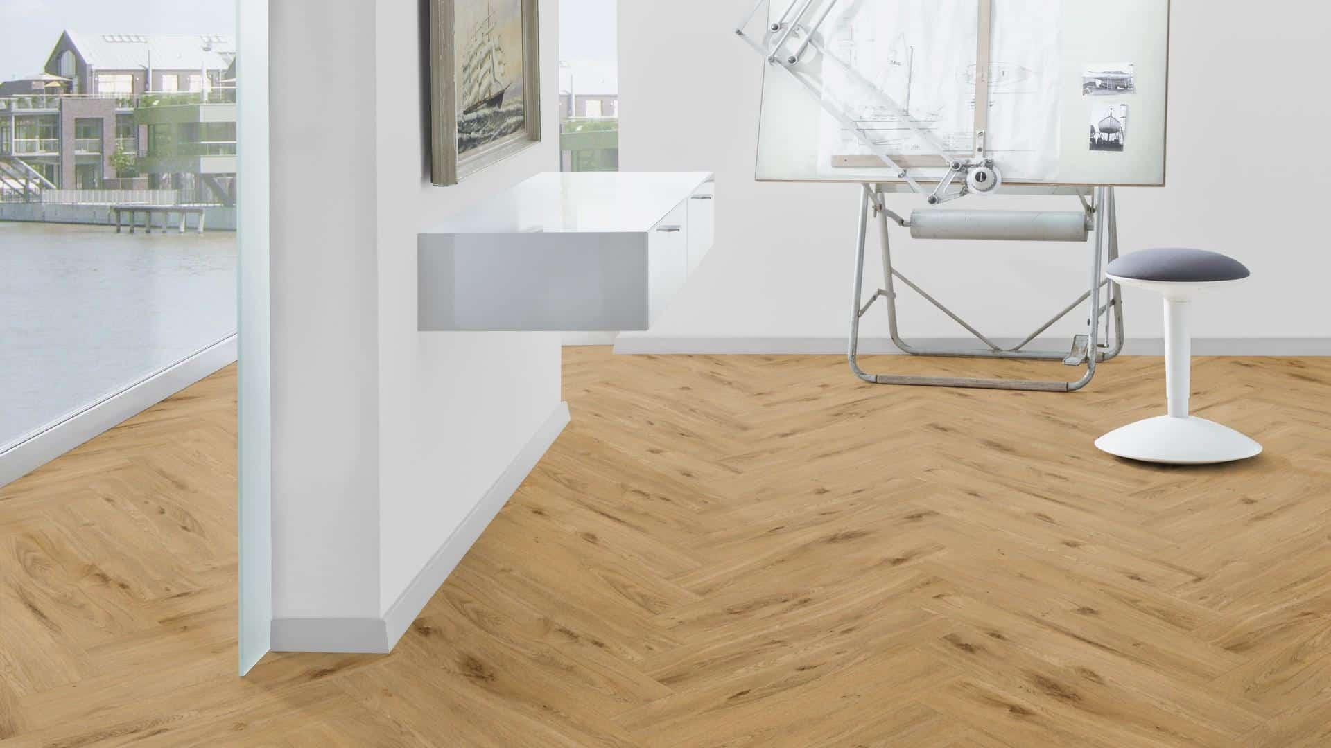 LVTC05a Oak York – parchet hibrid vinil, similar lemn, montaj herringbone, suprafata mata. Parchet hibrid LVT recomandat si pentru pardoseli cu incalzire.
