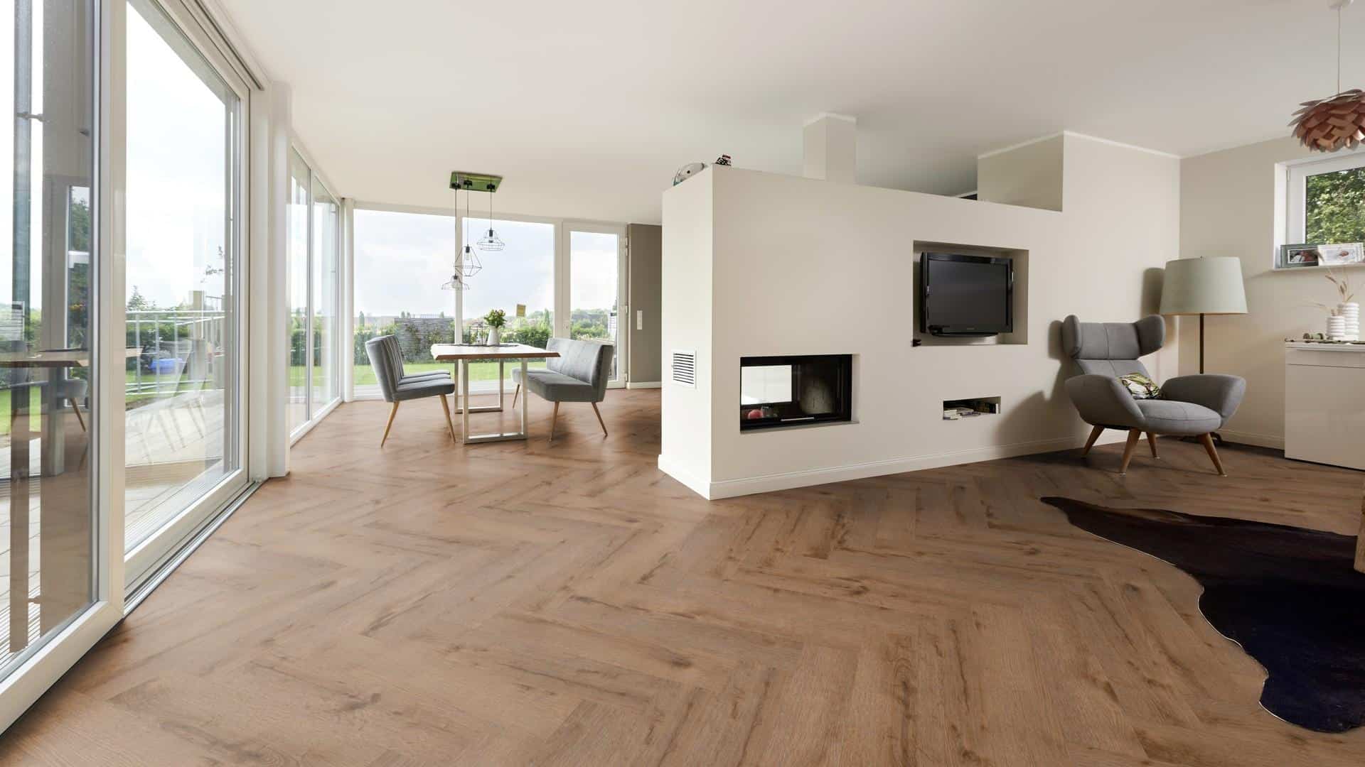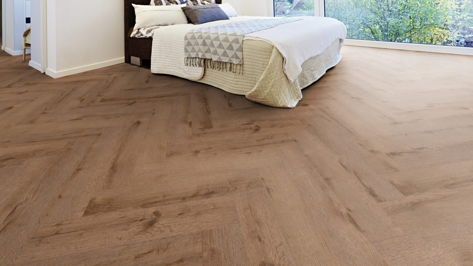 LVTD24a Oak Washington – parchet hibrid vinil, similar lemn, montaj herringbone, suprafata mata. Parchet hibrid LVT recomandat si pentru pardoseli cu incalzire.