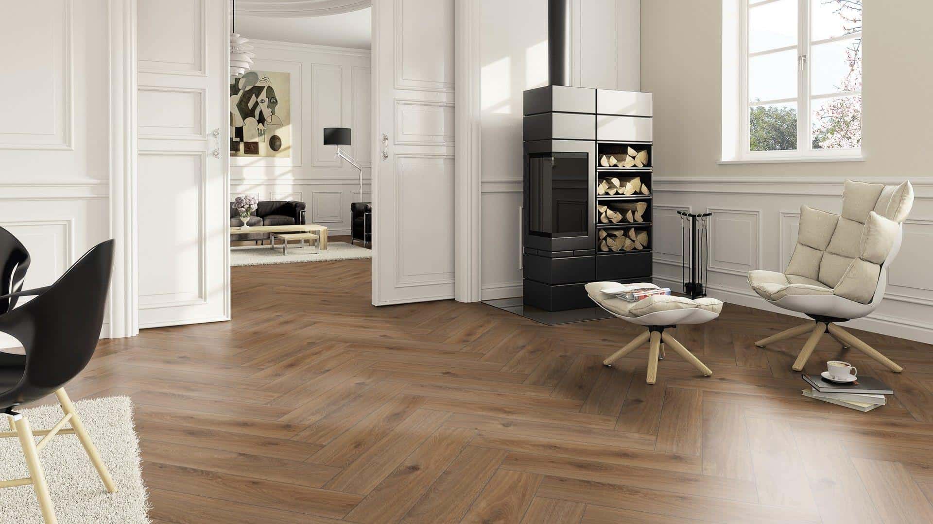 LY02 Parchet Laminat Herringbone Oak Condo, similar stejar, lamelă herringbone, periat linear, suprafața mată, sistem de montaj patentat ClickItEasy Pro, plintă asortată. Zero emisii nocive (clasa A+). LY02 Parchet Laminat Herringbone Oak Condo este recomandat și pentru pardoseli cu încălzire. Parchet produs de Ter Hurne.