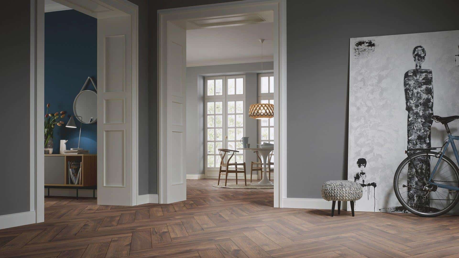 LY08 Parchet Laminat Herringbone Oak Cabin, similar stejar, lamelă herringbone, periat linear, suprafața mată, sistem de montaj patentat ClickItEasy Pro, plintă asortată. Zero emisii nocive (clasa A+). LY08 Parchet Laminat Herringbone Oak Cabin este recomandat și pentru pardoseli cu încălzire. Parchet produs de Ter Hurne.