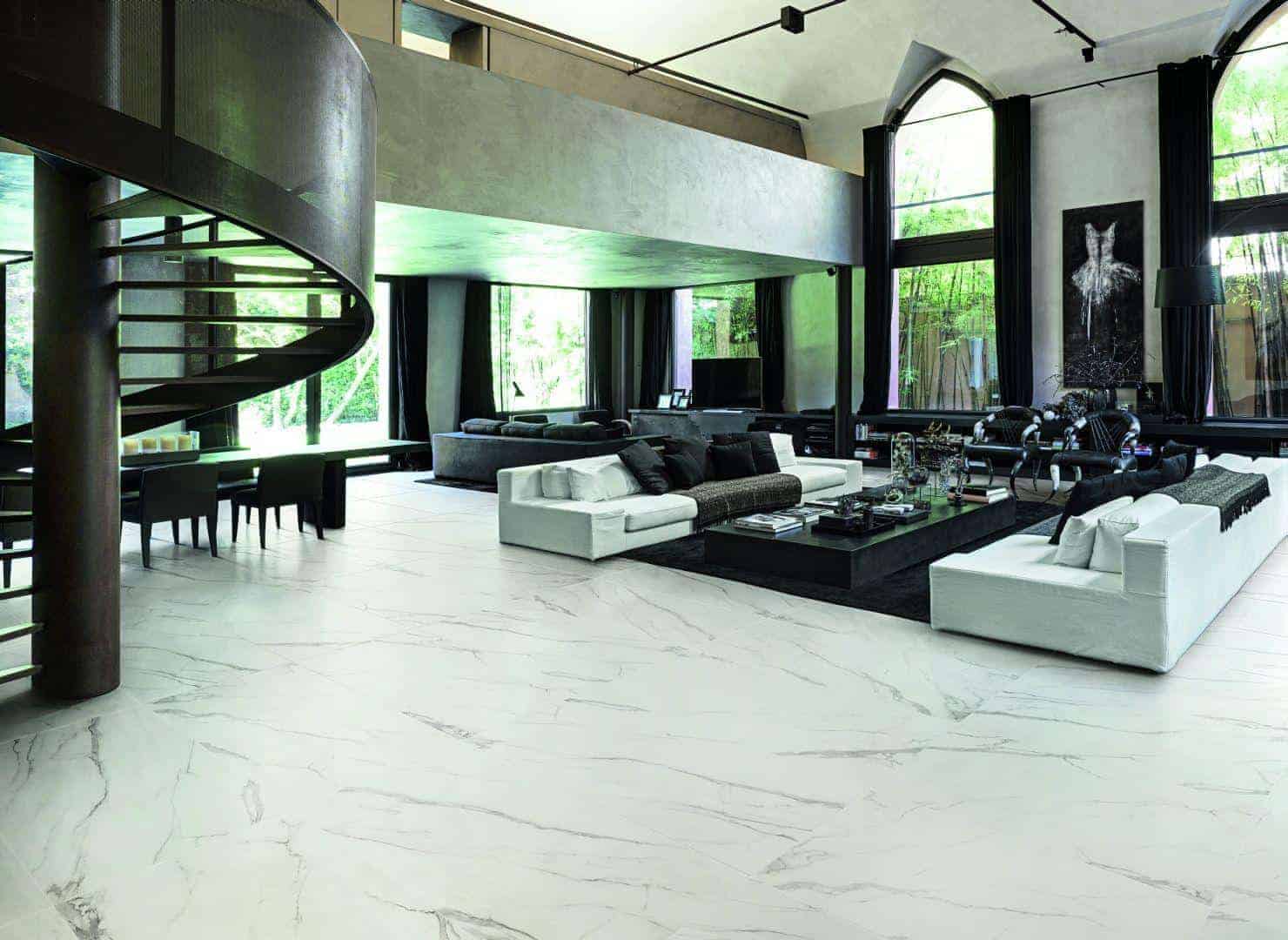 Gresia porțelanată tip marmură este o opțiune populară pentru a crea un aspect luxos și elegant. Gresiei porțelanată cu aspect marmură imită frumusețea și textura marmurei naturale, oferind în același timp o durabilitate și o ușurință în întreținere mult mai mari decât cele ale pietrei naturale. Datorită tehnologiei avansate de fabricație, modelele și culorile pot fi imitate cu o precizie ridicată. De asemenea, este ușor de curățat și de întreținut, fiind o opțiune excelentă pentru zonele cu trafic intens, cum ar fi holurile, camerele de zi, băile și bucătăriile. Gresia porțelanată este recomandată și pentru pardoseli cu încălzire.