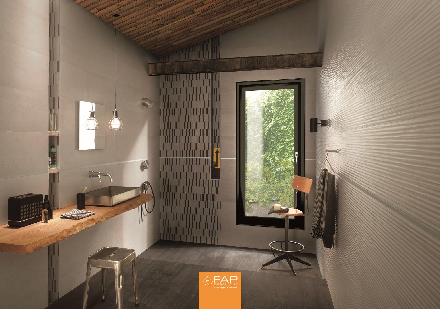 Baie cu Faianta Decorata si Gresie tip Parchet Roots