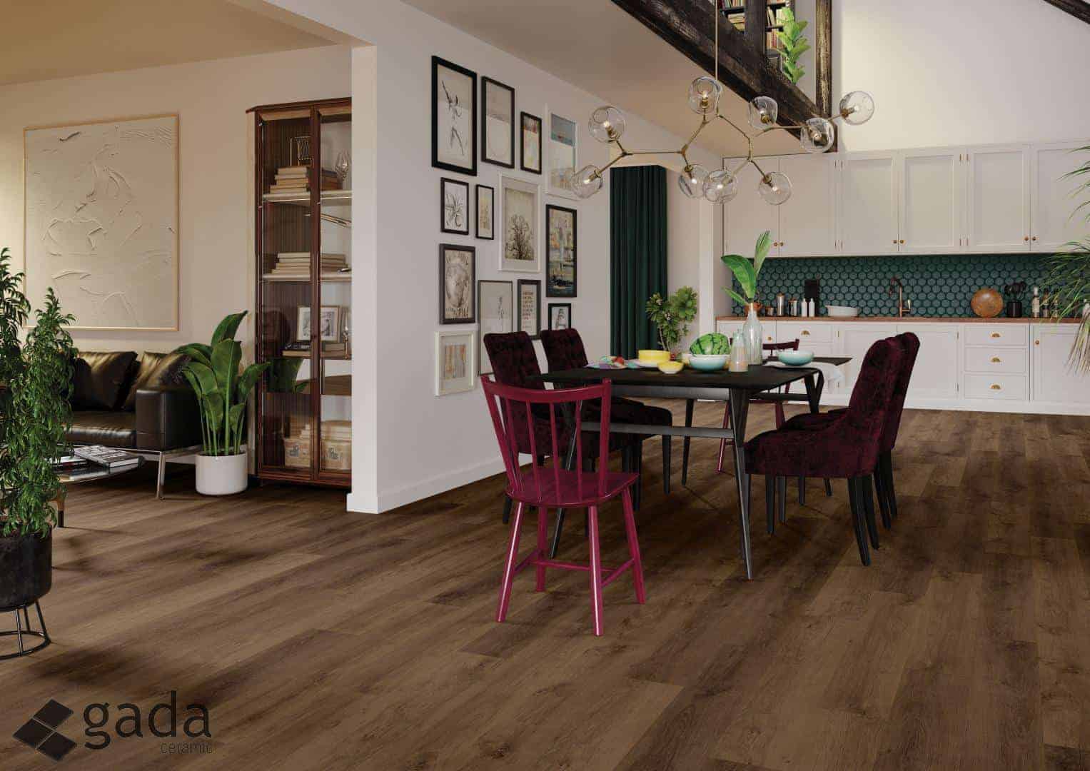 Parchet LVT – lamela full plank, aspect lemn de stejar si alte esente, nuante inchise. Parchetul hibrid LVT este solutia ideala pentru pardoseli interioare, material foarte rezistent la zgarieturi datorita stratului de acoperire Diamond Shield. Pardoseala silentioasa, usor de intretinut, sigura pentru copii (emisii zero), impermeabila, recomandata si pentru pardoseli cu incalzire.