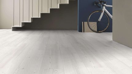 Parchet SPC Woodric Eir Stejar Garland – parchet hibrid, lamela unică, similar lemn de stejar, suprafață periată mată, bizot V pe toate laturile, sistem de montaj Click 2G, plintă asortată sau albă. Lamele de parchet cu grosime redusă, impermeabile, suprafață din polimer foarte rezistentă. Parchet SPC Woodric Eir Stejar Garland recomandat și pentru pardoseli cu încălzire. Parchet SPC de la Arbiton.