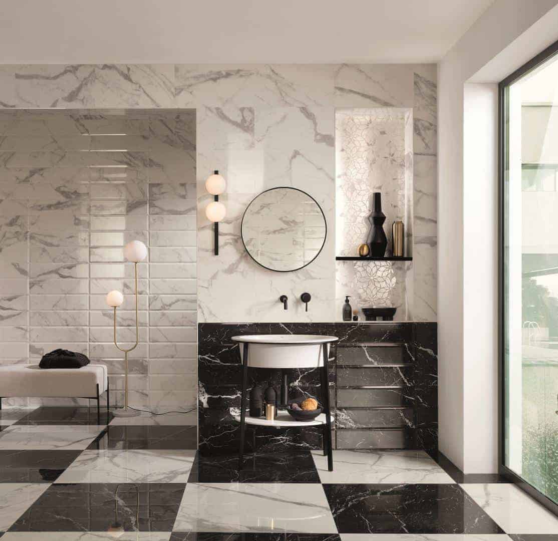 Faianța tip marmură lucioasă este o opțiune populară pentru a aduce un aspect de lux și eleganță în interiorul casei. Datorită progreselor în tehnologia de fabricație, astăzi faianța tip marmură poate imita cu o mare precizie frumusețea și textura marmurei naturale. Această faianță este disponibilă într-o gamă largă de culori și modele, astfel încât poate fi adaptată la diferite stiluri de design. Faianța tip marmură este ideală pentru a fi folosită în bucătării, băi și alte zone umede, deoarece este rezistentă la apă și ușor de curățat. De asemenea, poate fi folosită în alte zone din casă, cum ar fi holurile și camerele de zi, pentru a crea un aspect elegant și sofisticat. Modele produse în Italia.