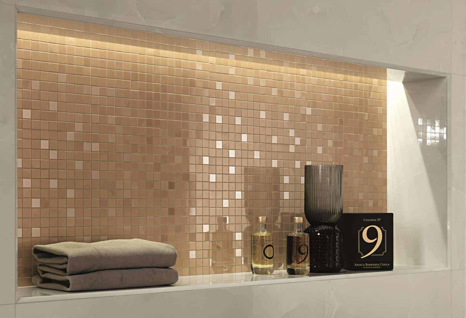 Roma Gold Faianta – colectie ce prezinta placi de faianta cu aspect de marmura si onix. Variantele cromatice impreuna cu o gama ampla de dimensiuni si placi decorate original reprezinta versatilitatea acestei colectii. Placi de faianta si elemente decorative unice ideale pentru o amenajare moderna mereu la moda. Colectie de faianta de la FAP Ceramiche Italia. Gresie asortata : colectia ROMA GOLD Gresie