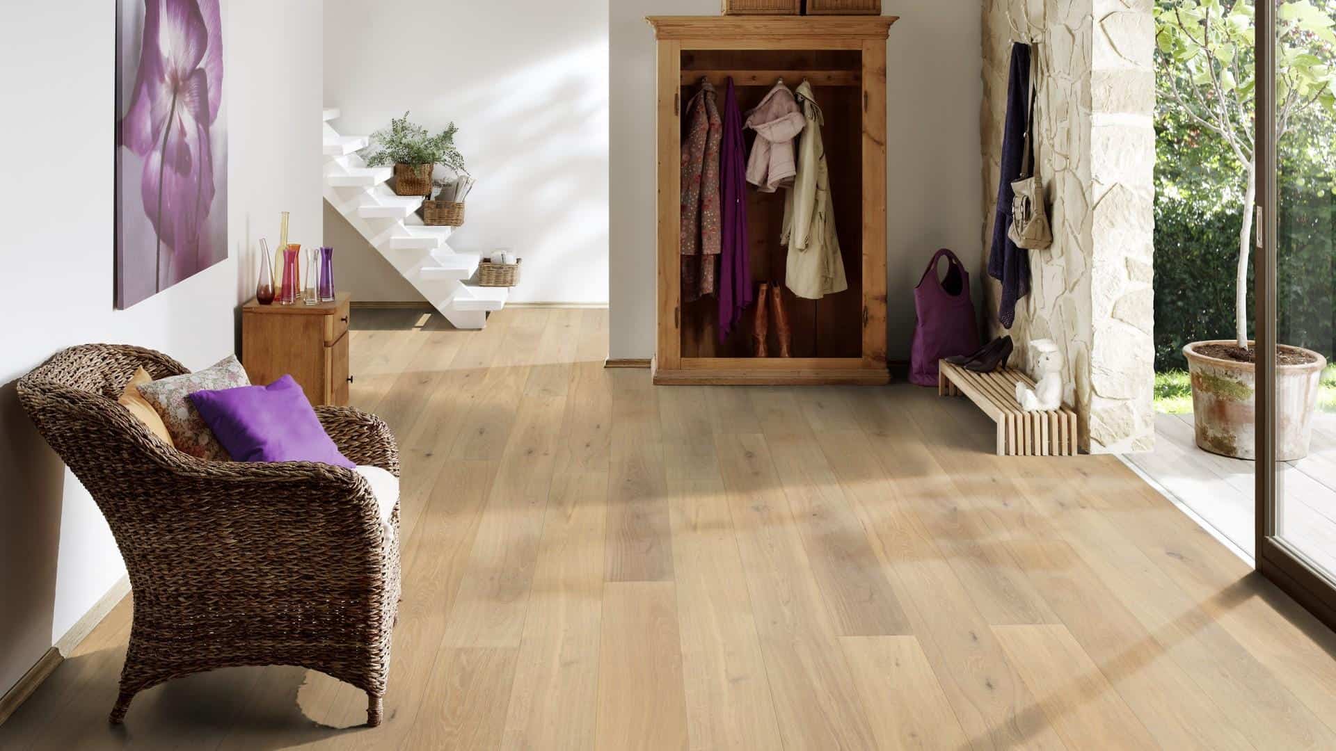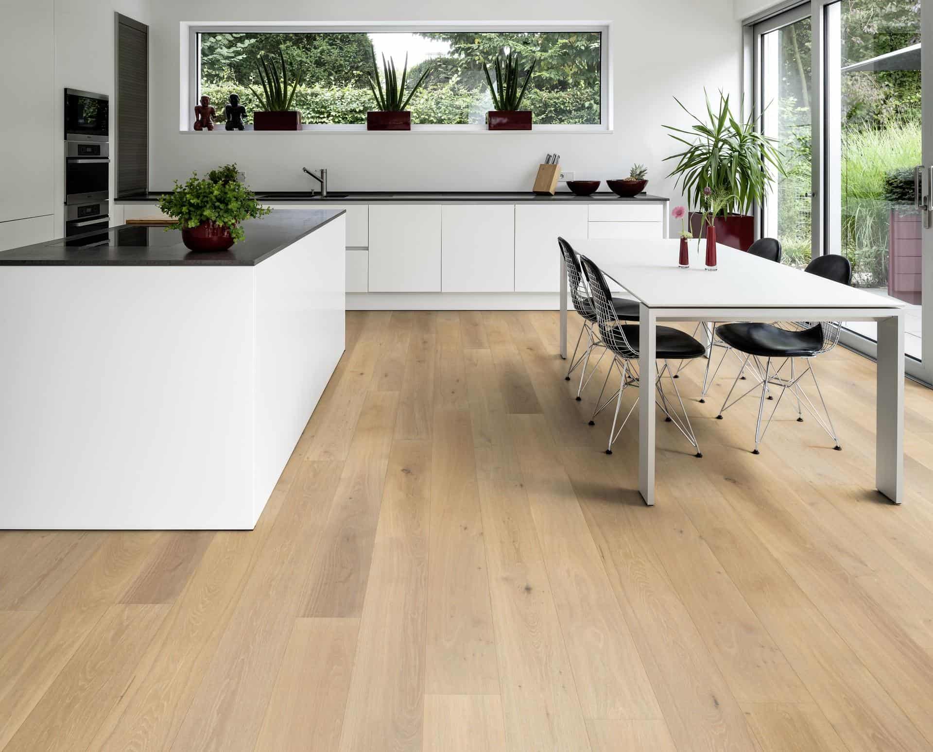 T05 Parchet Stejar Grey White FP – parchet din lemn triplustratificat, strat nobil din lemn de stejar periat, albit, lacuit mat, selectie lemn: balanced(2), sistem de montaj patentat ClickitEasy, bizot V pe toate laturile, plinta albă sau în culoarea parchetului. Suprafața lăcuită este disponibilă cu două niveluri de luciu și rezistă la trafic datorită elasticității lacului. Prin lăcuire lemnul rămâne protejat și este ușor de întreținut. T05 Parchet Stejar Grey White FP recomandat și pardoseală cu încălzire. Parchet din lemn de la Ter Hurne Germania.