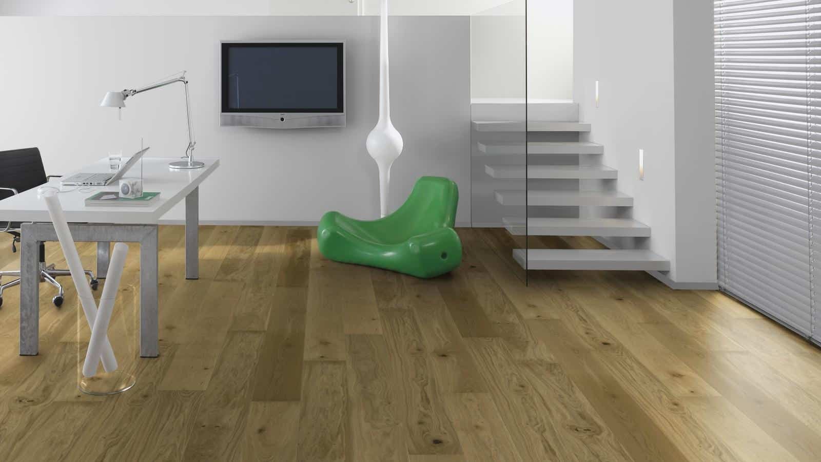 T09 Parchet Stejar FP 200 Expressive – parchet din lemn triplustratificat, strat nobil din lemn de stejar, lăcuit mat, selecție lemn: expressive(3). , sistem de montaj patentat ClickitEasy, bizot V pe toate laturile, plinta albă sau în culoarea parchetului. Suprafața lăcuită este disponibilă cu două niveluri de luciu și rezistă la trafic datorită elasticității lacului. Prin lăcuire lemnul rămâne protejat și este ușor de întreținut. T09 Parchet Stejar FP 200 Expressive recomandat și pardoseală cu încălzire. Parchet din lemn de la Ter Hurne Germania.