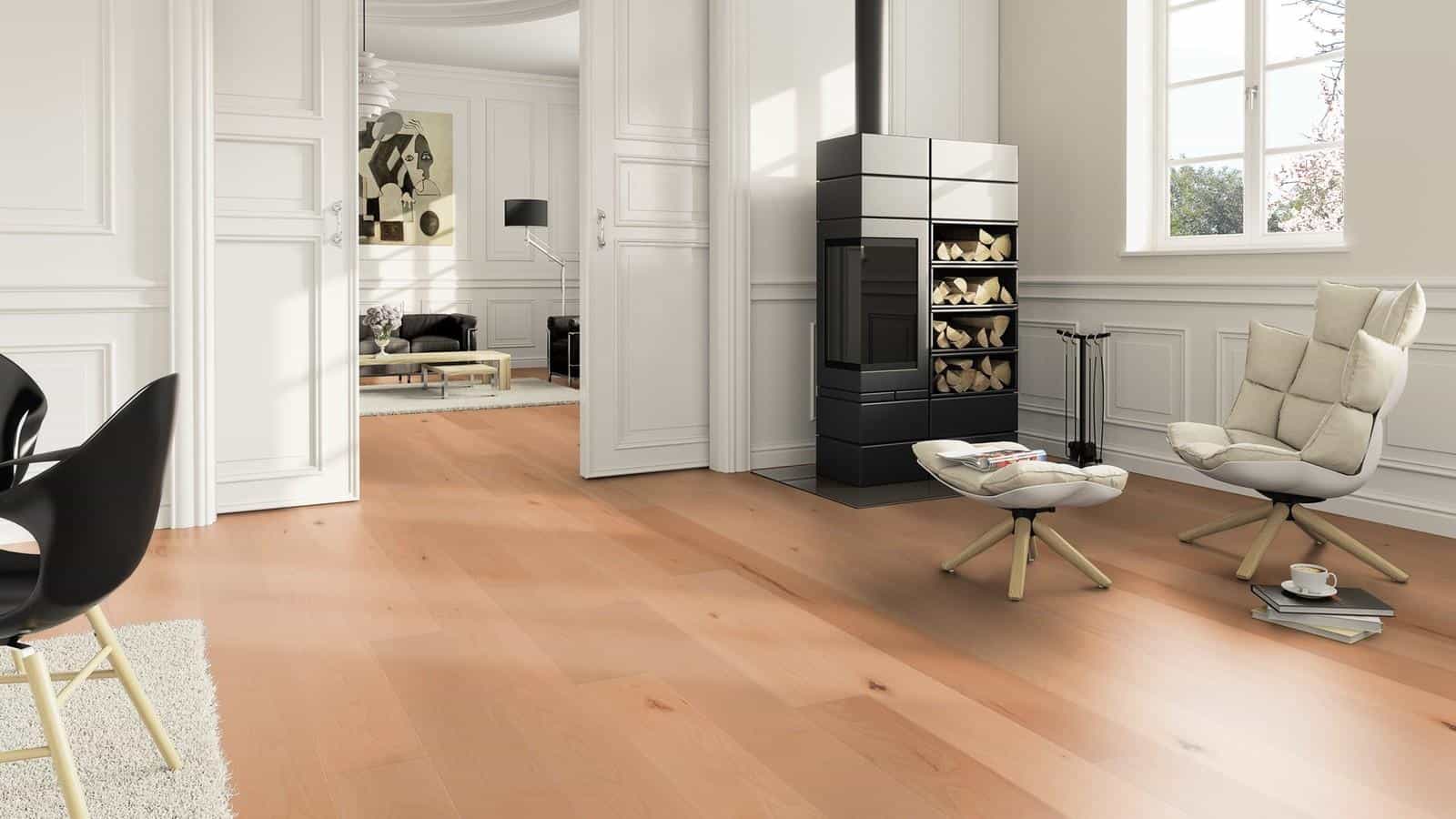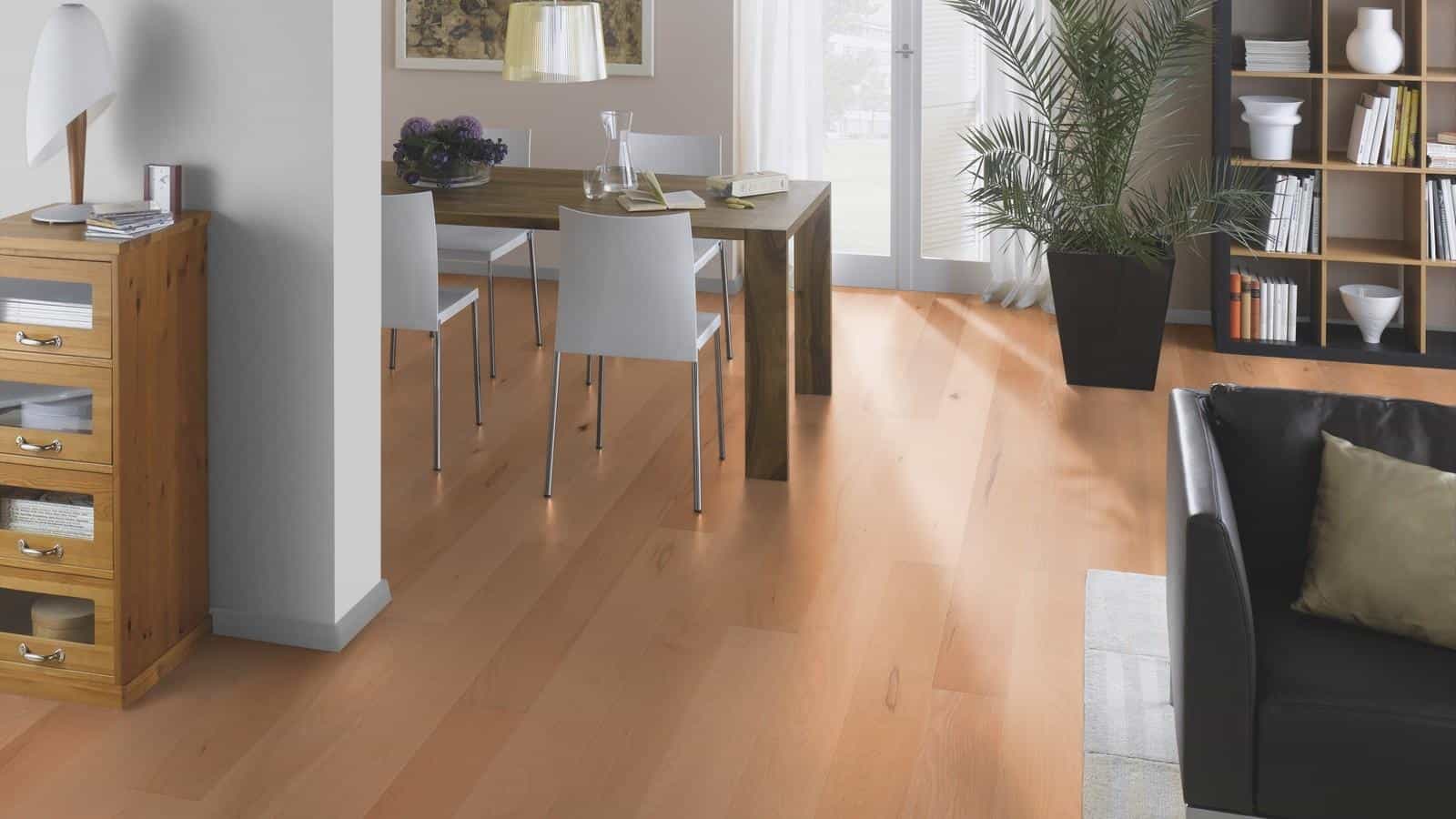 T11 Parchet Fag FP 162 Lacuit – parchet de lemn triplustratificat, strat nobil din lemn de fag, lăcuit, selecție lemn: balanced(2), sistem de montaj patentat ClickitEasy, bizot V pe toate laturile, plinta albă sau în culoarea parchetului. Suprafața lăcuită este disponibilă cu două niveluri de luciu și rezistă la trafic datorită elasticității lacului. Prin lăcuire lemnul rămâne protejat și este ușor de întreținut. T11 Parchet Fag FP 162 Lacuit recomandat și pardoseală cu încălzire. Parchet din lemn de la Ter Hurne Germania..
