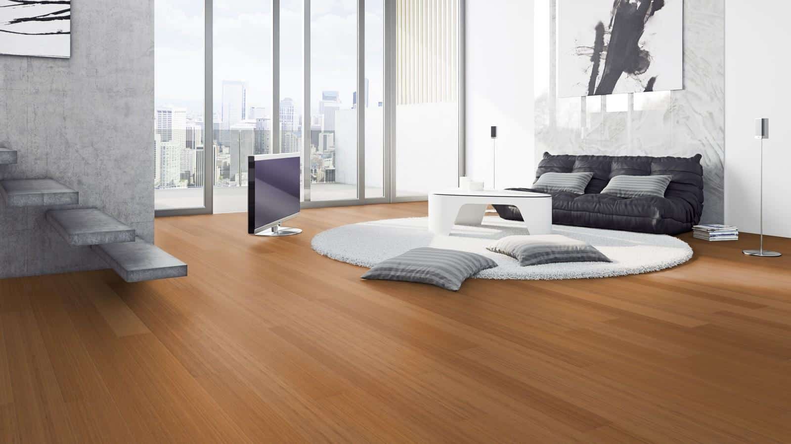 T13 Parchet Bambus Caramel Beige – parchet de lemn triplustratificat, strat nobil din lemn de bambus, lăcuit mat, colorat, selecție lemn: even(1), sistem de montaj patentat ClickitEasy, bizot V pe toate laturile, plinta albă sau în culoarea parchetului. Suprafața lăcuită este disponibilă cu două niveluri de luciu și rezistă la trafic datorită elasticității lacului. Prin lăcuire lemnul rămâne protejat și este ușor de întreținut. T13 Parchet Bambus Caramel Beige recomandat și pardoseală cu încălzire. Parchet din lemn de la Ter Hurne Germania.