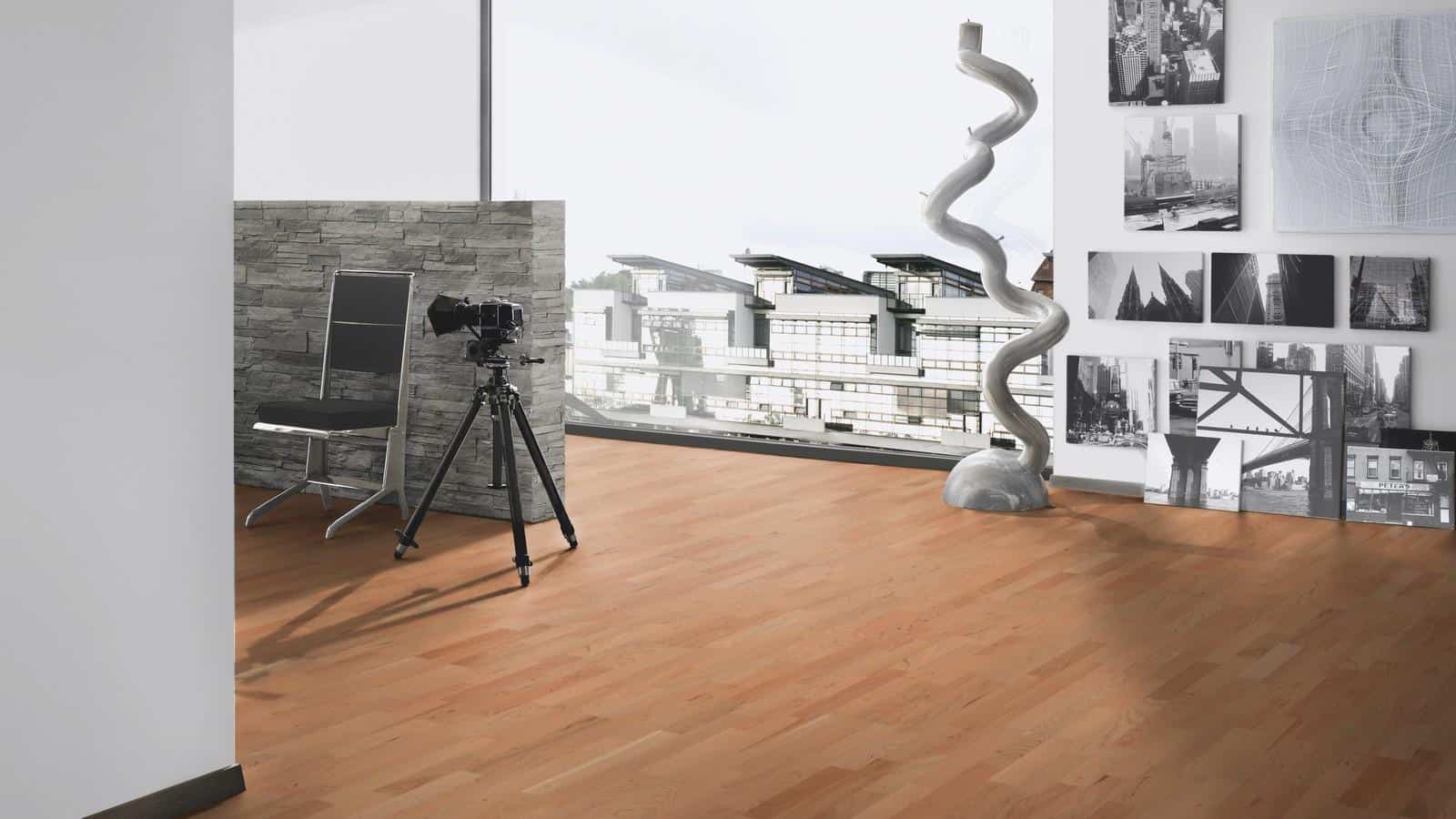 U11 Parchet Cires American 3S – parchet de lemn triplustratificat, strat nobil din lemn de cires, lăcuit, selecție lemn: balanced(2), sistem de montaj patentat ClickitEasy, fără bizot, plinta albă sau în culoarea parchetului. Suprafața lăcuită este disponibilă cu două niveluri de luciu și rezistă la trafic datorită elasticității lacului. Prin lăcuire lemnul rămâne protejat și este ușor de întreținut. U11 Parchet Cires American 3S recomandat și pardoseală cu încălzire. Parchet din lemn de la Ter Hurne Germania.