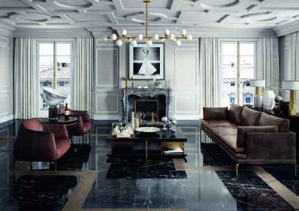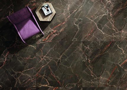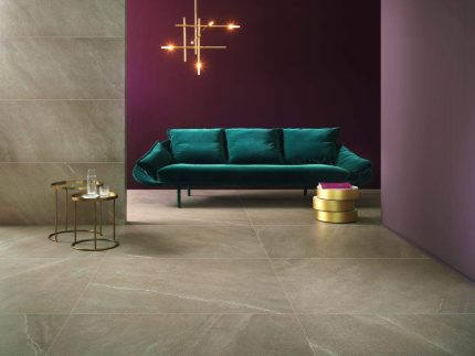 Gresie portelanata Breccia Argentum amenajare living, dimensiune placă 60×120 cm.
