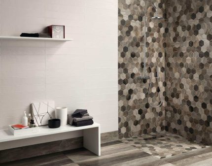 Mozaic Hexagonal Gresie Aspect Lemn Barn Wood Baie