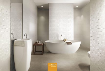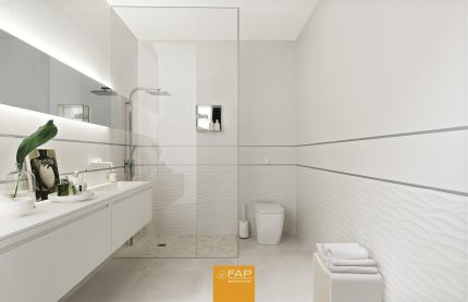 Baie cu Faianta Alba Mata 3D Lumina